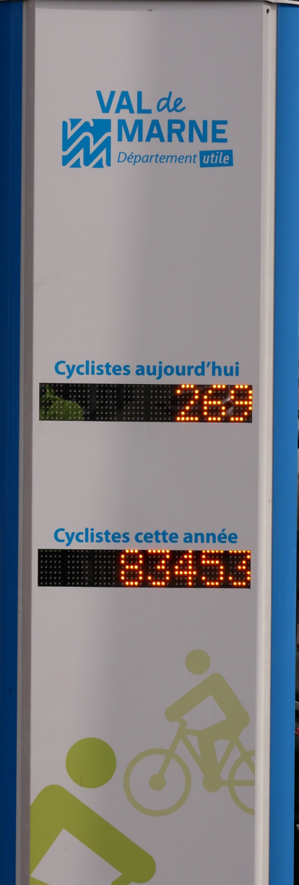 Petite halte devant le compteur de vélos à Choisy-le-Roi, avant d’attaquer la montée de Vitry-sur-Seine et de passer devant le centre de tests cosmétiques de l’Oréal à Villejuif.