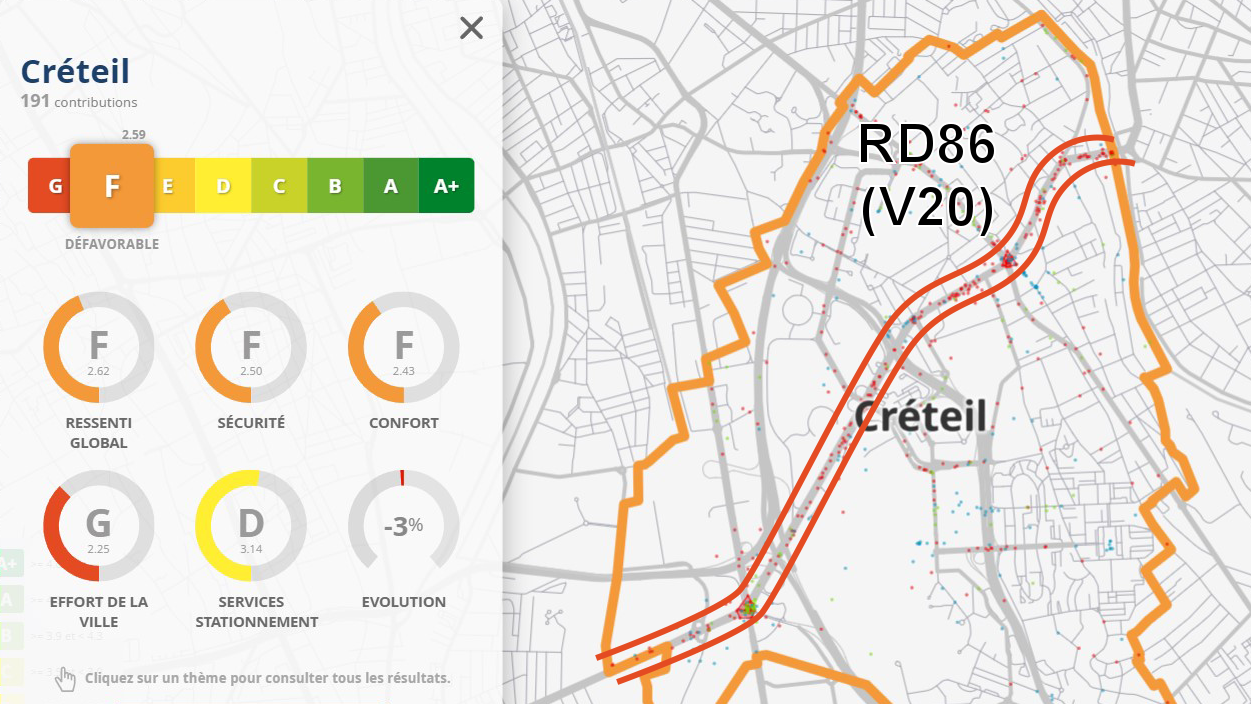 Cette route a pourtant été retenue par la Région Île-de-France pour y aménager des pistes cyclables (itinéraire V20 du réseau Vélo Île-de-France) dont elle participerait au financement avec le Département, mais la ville de Créteil s’y oppose, ce que nous dénoncions déjà ici et là.